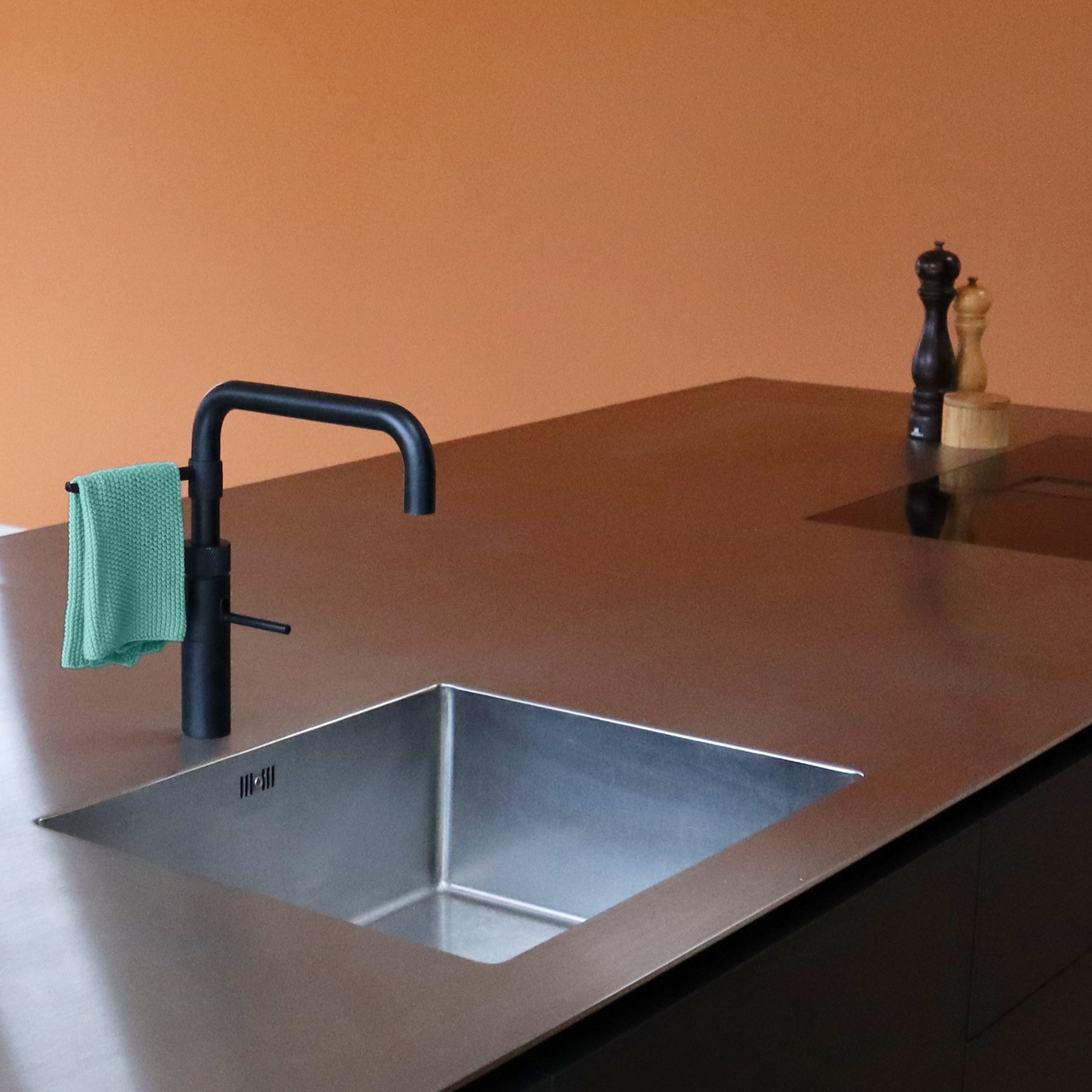 Dansk produceret kludholder i sort plast. Fremstillet i et minmalistisk og funktionelt design som en integreret del af vandhanen. Med en kludd karkludholder til din køkkenvask tørrer din karklud hurtigere, hvilket mindkser bakterievækst og lugtgener.
