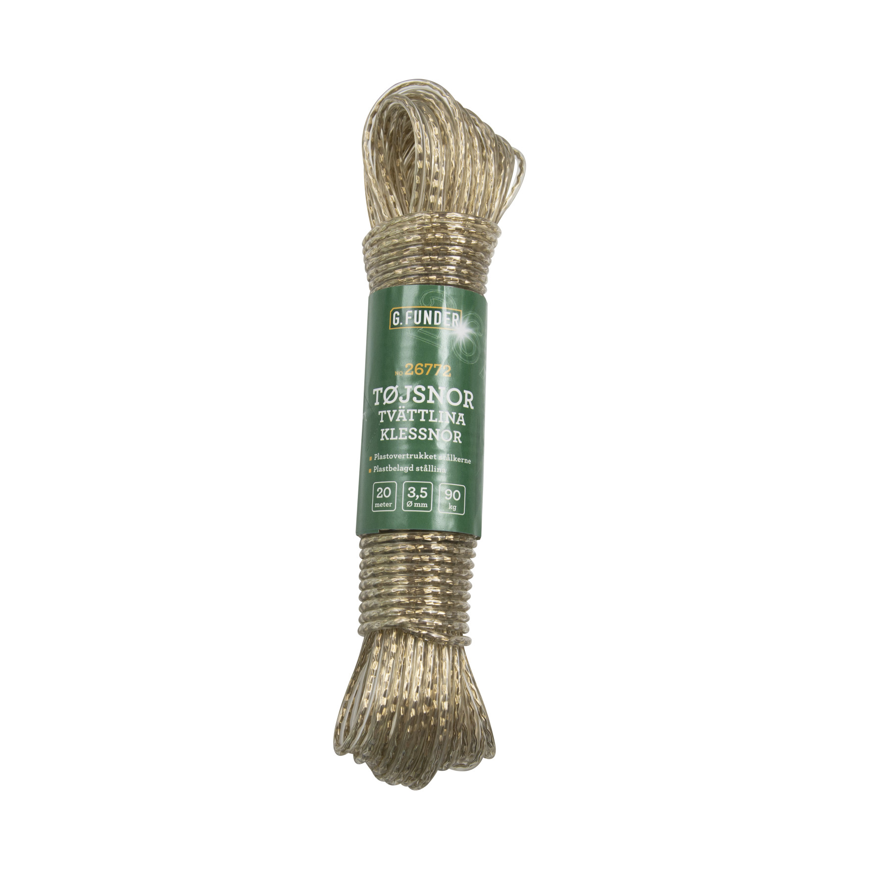 - TØJSNOR med stålwire, 3MM 20 meter - transparent plast tørresnor